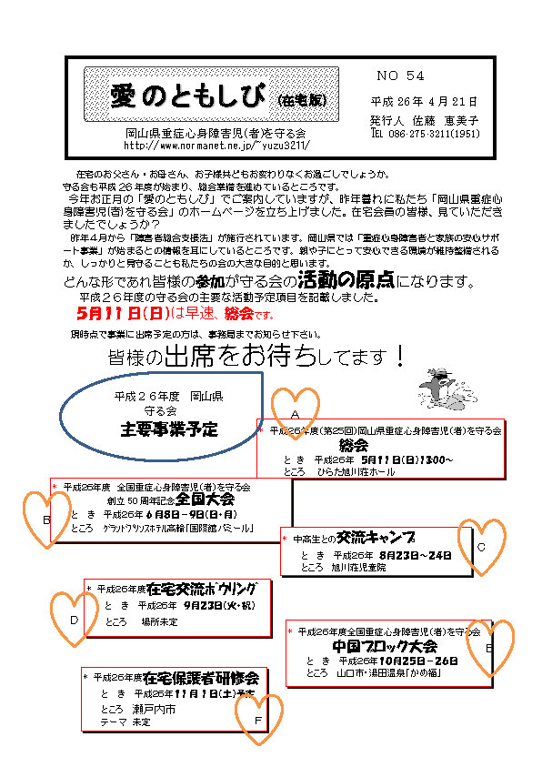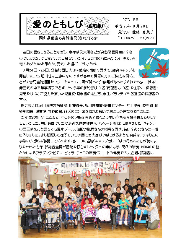 Copyright (C) 岡山県重症心身障害児(者)を守る会 All rights reserved. - 無断転載を禁じます -