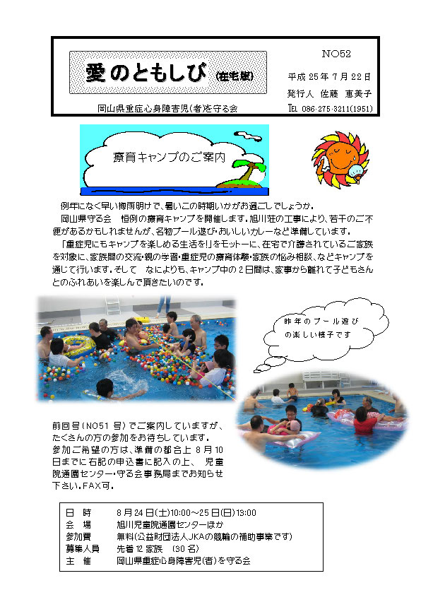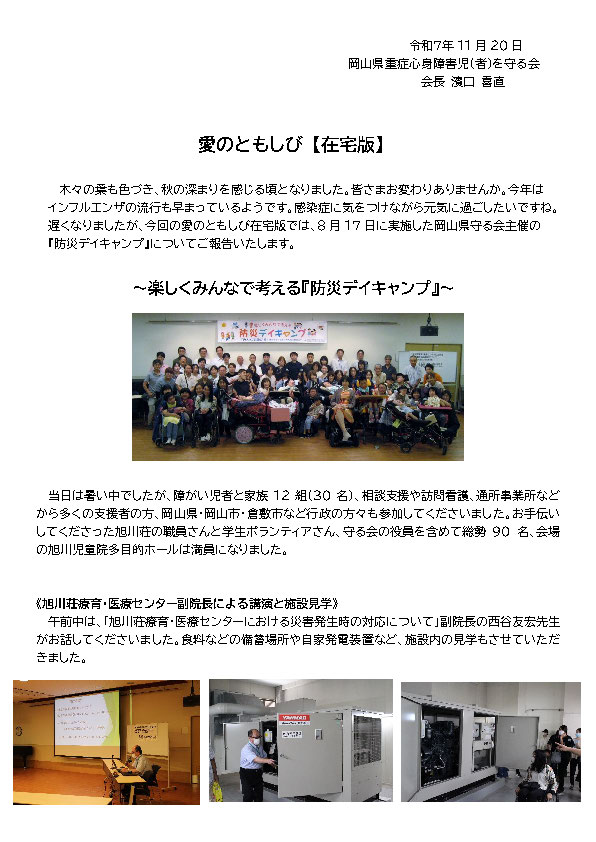 Copyright (C) 岡山県重症心身障害児(者)を守る会 All rights reserved. - 無断転載を禁じます -
